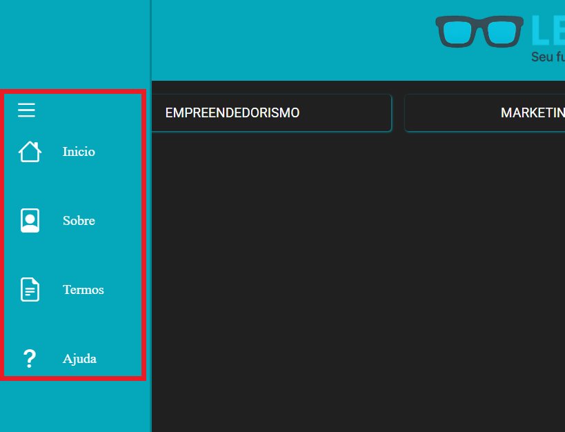 E tem as opções do menu vertical